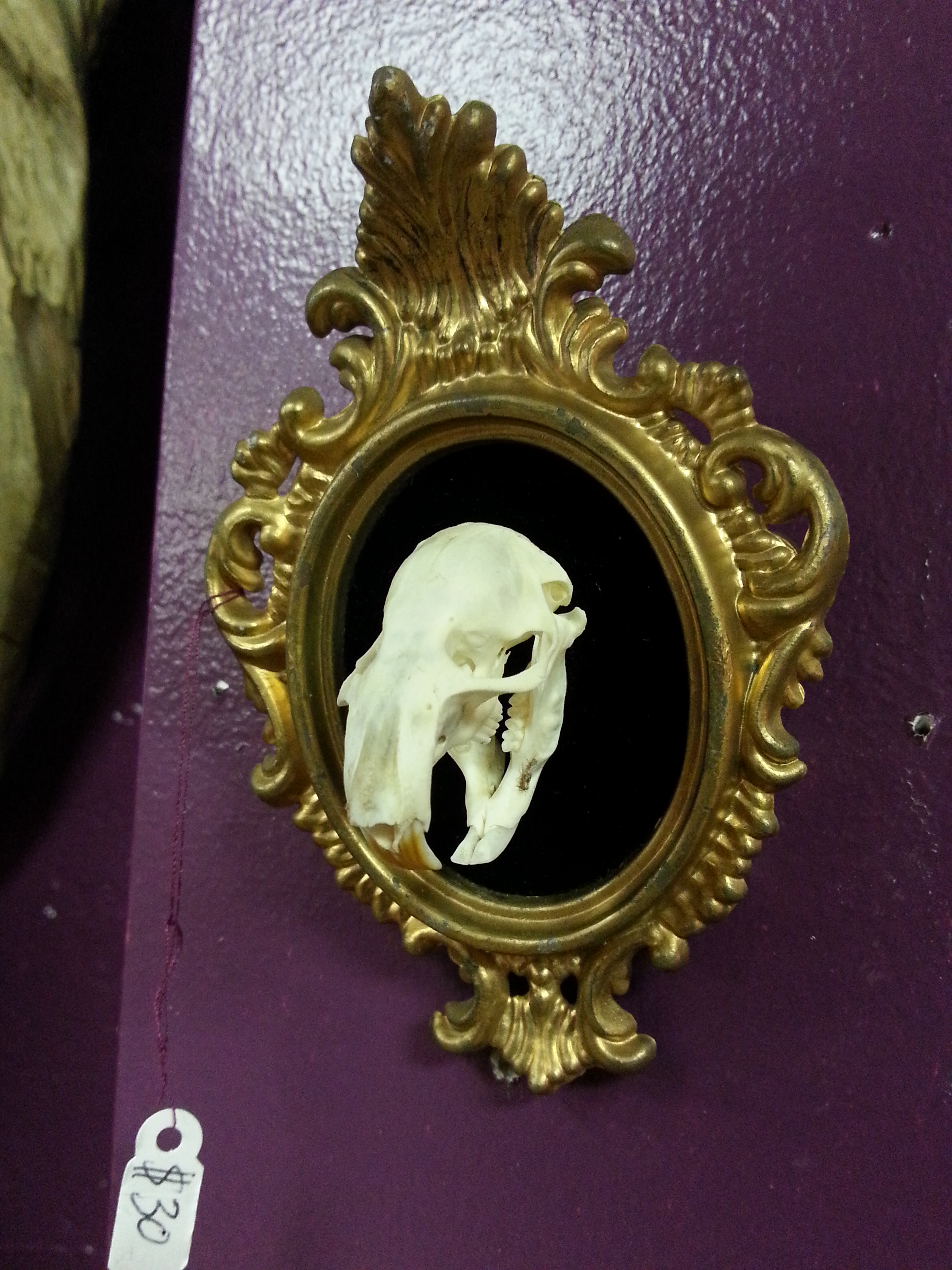 She’s been dying to go to The Strange and Unusual, and as a fan of the show, Oddities, I can’t say I wasn’t happy to take her. We made the drive out to Kingston, Pennsylvania and found the small yet oddly spacious parlor. Best of all, with Motionless in White in between tours, Josh was there. Really nice guy with a fabulous store of some of the quirkiest antiques, taxidermied beasts, mounted insects and polished skulls you’ll ever find. I walked around the parlor a half dozen times and my eyes kept catching things I’d missed on the previous circuit. It really is a feast for the senses (and head and shoulders above Obscura in NY – the place featured on the show, Oddities). It’s not cluttered or cramped, which made our stay even better. What made my day as the keeper of the books, the merchandise is reasonably priced, too.