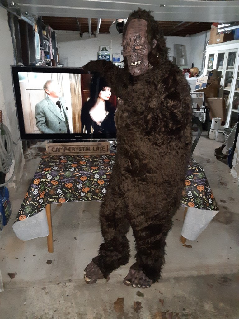 My Halloween Video Visions column is dedicated this year to all things Bigfoot. This time around, I’ll be your video store curator as I walk you through the Video Visions squatch section, offering you 32 Bigfoot Movies That Scratch That Squatchy Itch! And here I am last year chilling out while watching Elvira between trick or treaters.